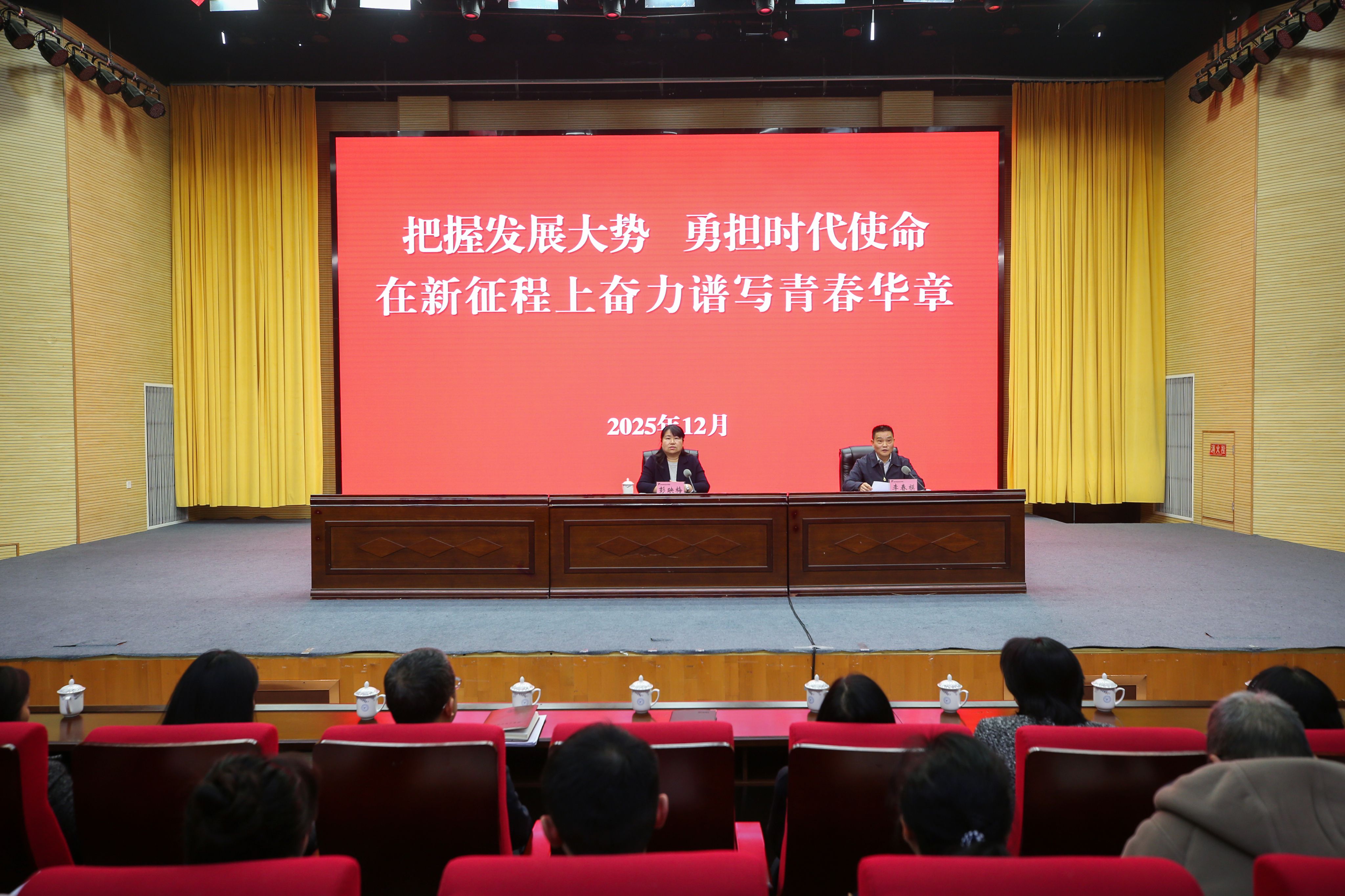 12月29日,市委副书记、市长彭映梅来到学校讲授思想政治理论课。她勉励广大师生,要深入学习贯彻党的二十届四中全会精神以及省委十二届八次全会、市委五届八次全会精神,保持昂扬向上奋斗姿态,把握发展大势、勇担时代使命,在新征程上奋力谱写青春华章。学校党委书记李春模主持。宣讲会上,彭映梅紧紧围绕学习贯彻党的二十届四中全会精神,紧扣全会召开的重大意义,“十四五”时期我国经济社会发展的重大成就,“十五五”时期...
