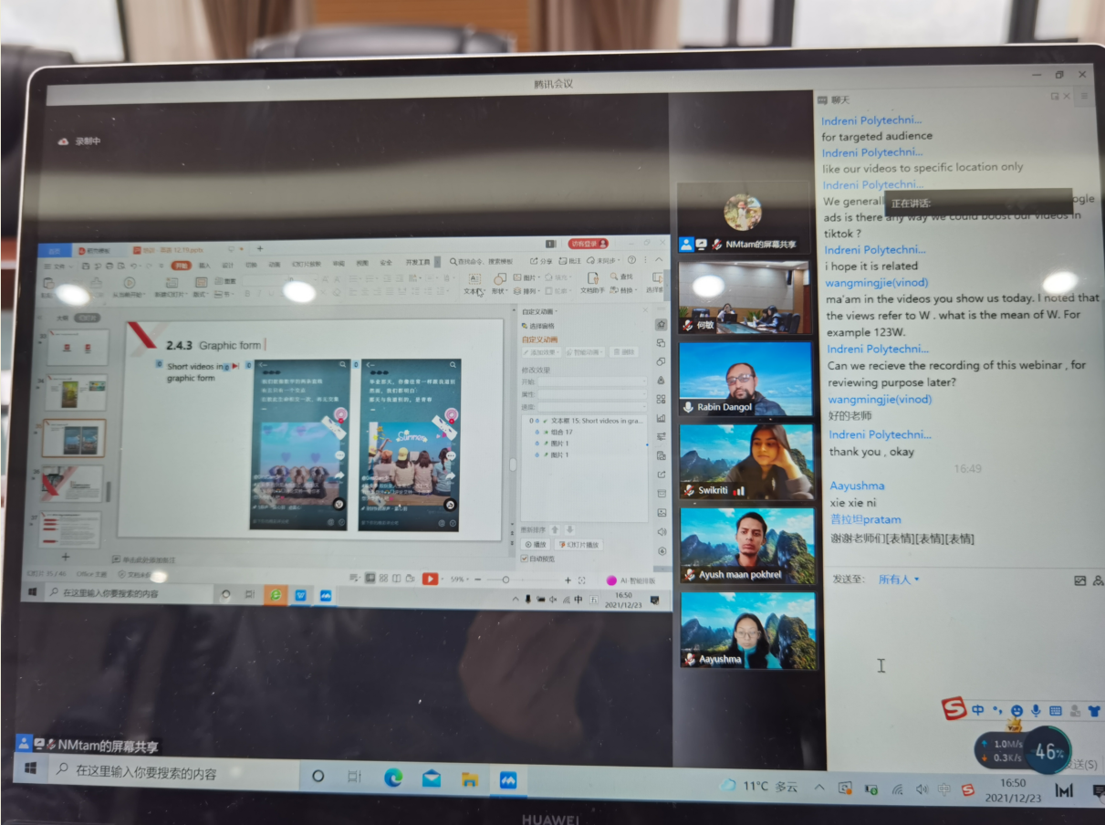 The lecturers were Mr. Gao Yongping and Ms. Qiao Chunlin from the School of Intelligent Manufacturing and Information Engineering, with English interpreters on site to teach in both English and Chinese. The content was mainly focused on e-commerce and Tik-Tok, which enabled the participants to better understand the development of e-commerce and new media, improve their ability to design and plan the content of self-media and manage the live streaming process,