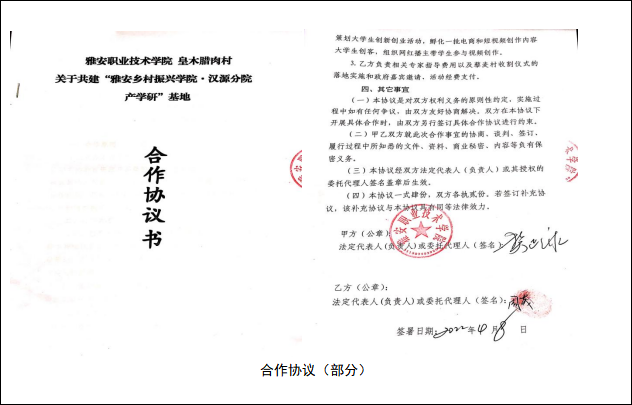 5.4月9日,雅安乡村振兴学院(汉源分院)与汉源县皇木镇腊肉村合作共建的雅安乡村振兴学院(汉源分院)“产学研基地”正式签约挂牌