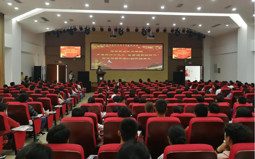 【本网讯】为深入学习贯彻党的十九大精神,紧跟时代步伐与要求,推动学院发展再创新辉煌,4月3日下午,学院“青春实践十九大,奋勇建功新时代”第五期团校开班典礼于青年路校区实验实训楼多功能厅举行。团校校长、院...