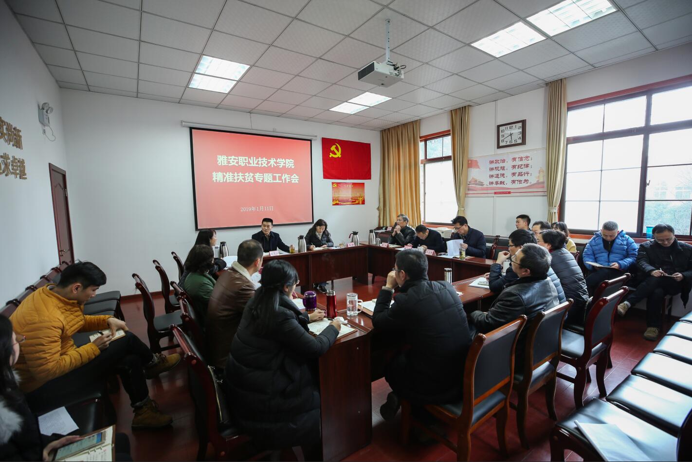 【本网讯】1月11日下午,学院精准扶贫专题工作会在育才路校区B211会议室召开,会议由党委书记李春模主持,院长石静出席会议,党委委员、各党总支、直属党支部书记、相关部门负责人以及精准扶贫办公室工作人员参加了本...