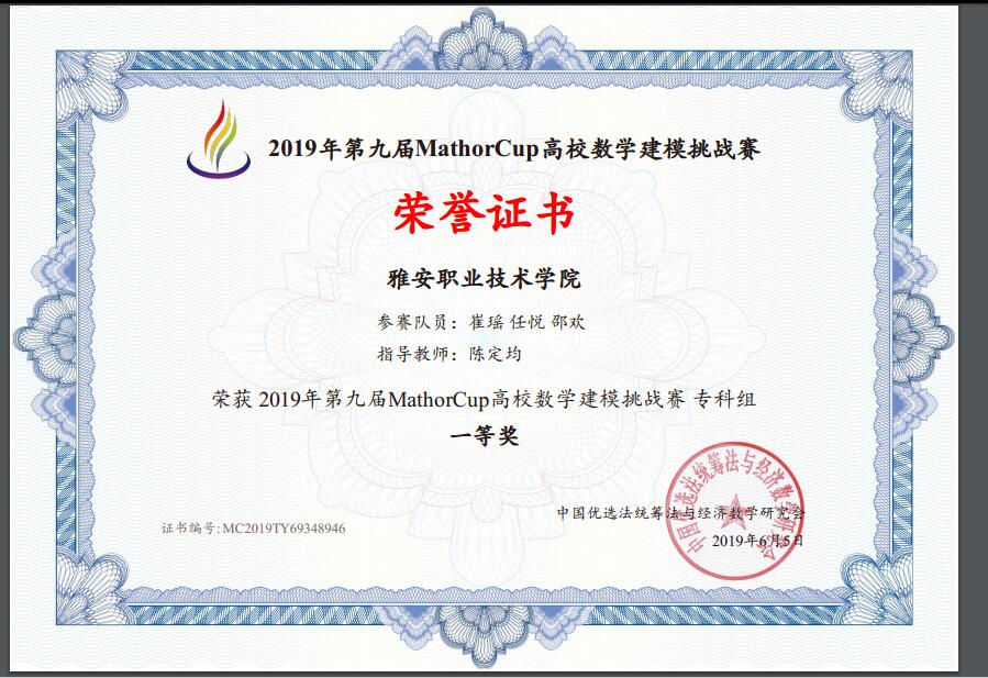 06-12-2019师范学院学生荣获2019年第九届MathorCup高校数学建模挑战赛专科组国家一等奖
