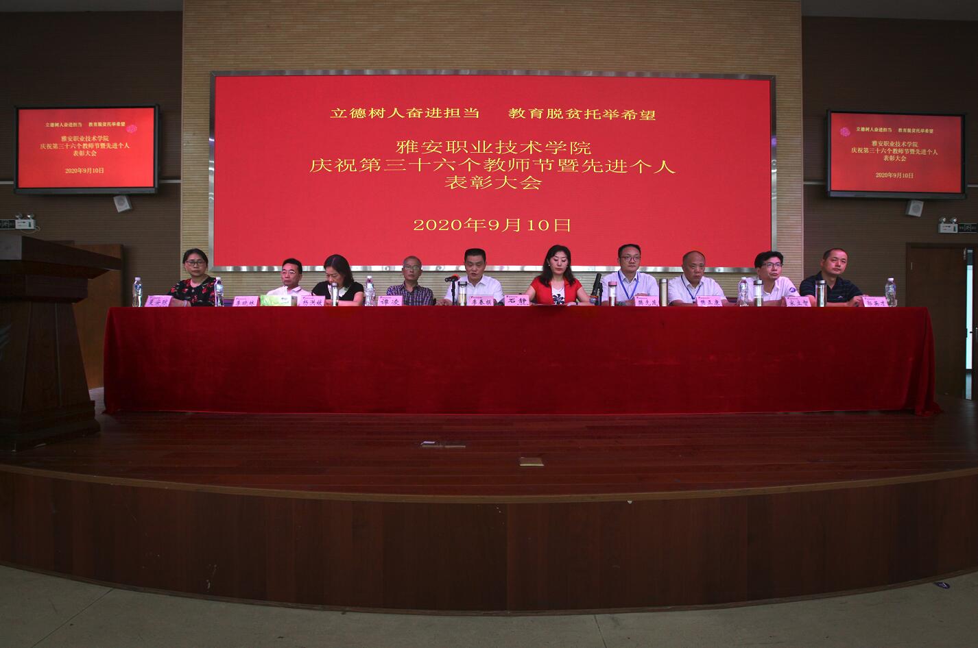 9月10日下午,在青年路校区实验实训楼多功能厅,学院召开主题为“立德树人奋进担当,教育脱贫托举希望”的庆祝第36个教师节暨先进个人表彰大会。学院党政班子成员、全体中层干部、受表彰优秀个人、2019年下半年至202...