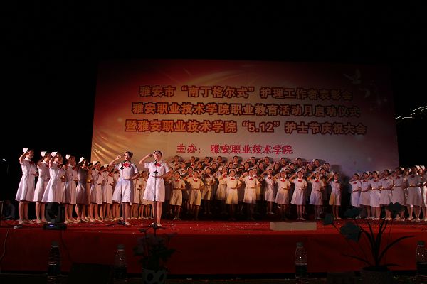 【本网讯】为庆祝“5.12”国际护士节,弘扬“南丁格尔”精神,5月10日晚,由护理系承办的雅安市“南丁格尔式”护理工作者表彰会暨“5.12”护士节庆祝大会在青年路校区田径场隆重举行。学院党委书记张大凯,院长石静,...