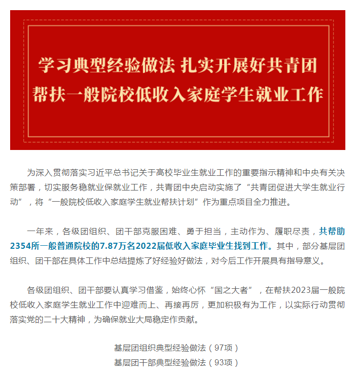 12-29-2022学院“雅职青晓”团干工作室就业帮扶案例成功入选团中央基层团干部典型经验做法