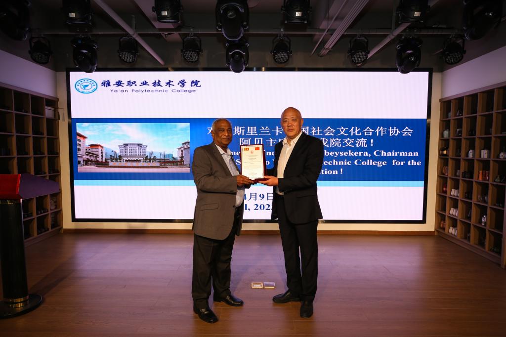 4月9日上午,斯里兰卡中国社会文化合作协会主席阿贝(Indrananda Abeysekera)在四川省人民对外友好协会的陪同下来校交流访问,并在青年路校区茶创空间召开交流访问座谈会,雅安市经济合作和外事局副局长谭昌明,学院党委委员、副院长樊正康,相关二级单位负责人参加座谈会。阿贝一行参观了经济与管理学院餐厅实训室、直播电商实训基地、茶创空间等,并现场观看长嘴壶茶艺展示和留学生实操训练。在交流访问座谈会上,谭昌明致欢...