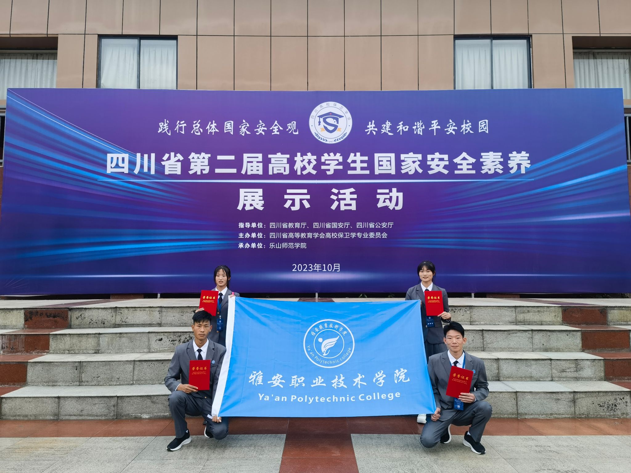 10月27日至10月29日,四川省第二届高校学生国家安全素养展示活动在乐山师范学院举行。学院参加活动团队经过激烈角逐,荣获三等奖,在全省高校中排名第七,高职院校中排名第一,教师刘晓璐荣获优秀指导教师。本次活动由四川省教育厅、四川省国安厅、四川省公安厅指导,四川省高等教育学会保卫学专业委员会主办、乐山师范学院承办,吸引了全省130余所院校参加。经过5个月校内初赛、片区复赛,全省共17个高校晋级决赛。在半决赛和...