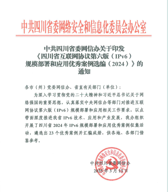 03-14-2025beat365官网获评四川省2024年互联网协议第六版(IPv6)规模部署和应用典型案例