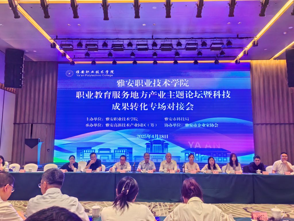 4月18日下午,学校首届职业教育服务地方产业主题论坛暨科技成果转化专场对接会在雅安科技创新综合体——资源服务大厅一楼学术报告厅顺利召开。市科技局党组书记官健,学校党委常委、副校长樊正康,雅安市企业家协会副秘书长吕新生,市文旅融合发展服务中心相关负责人,20余家雅安市及周边地区合作企业代表、医疗机构代表负责人,学校科研团队负责人、成果负责人共50余人参加会议。此次会议由学校联合市科技局主办,高新技术产业...
