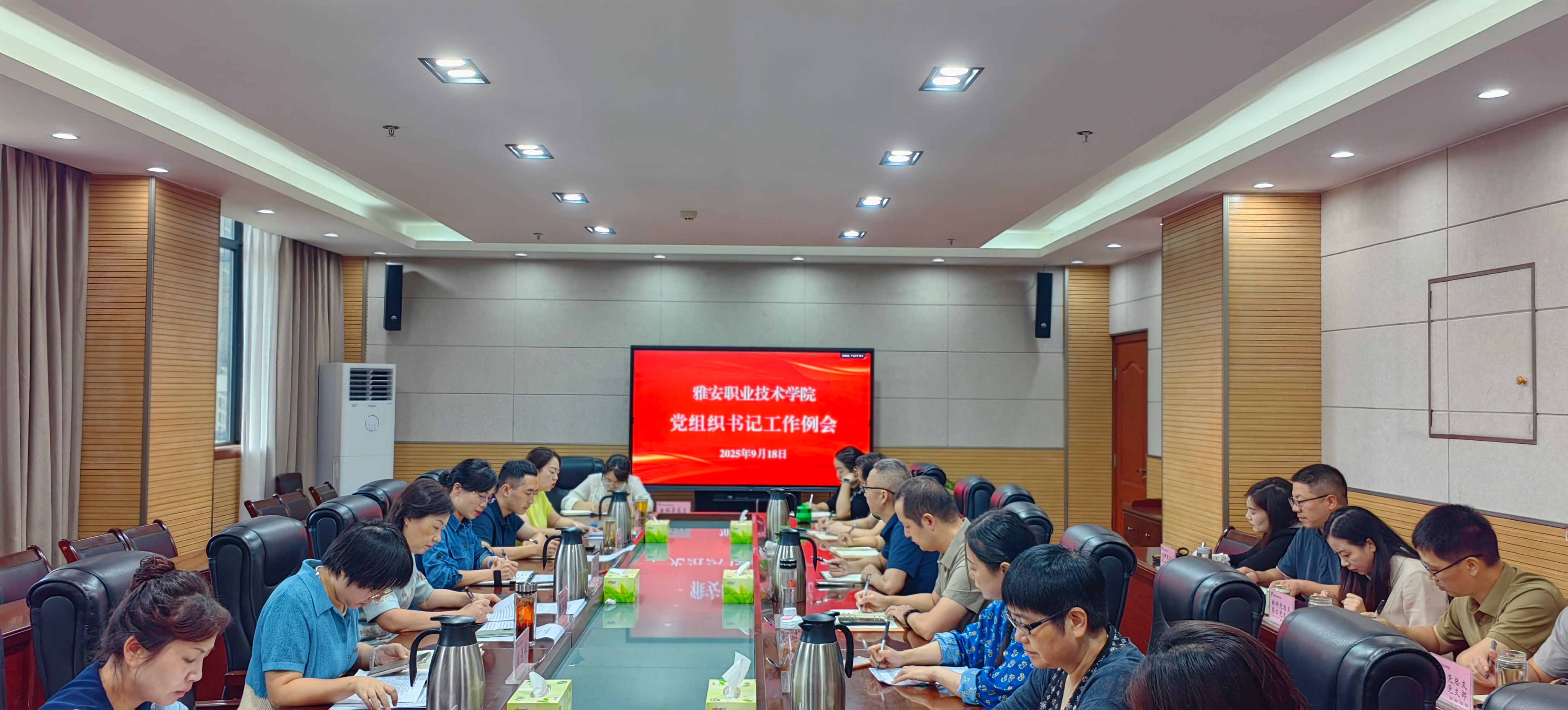 9月18日上午,学校党委召开党组织书记工作例会。学校党委副书记杨洪媛出席会议并讲话。会议由党委常委、组织部部长、人事处处长刘永恩主持。党委职能部门负责人,各二级党组织书记,党群党总支、教科党总支和后勤党总支下设党支部书记参加会议。杨洪媛在总结讲话中充分肯定了上半年学校党建工作成效。她指出,当前学校正处在科学谋划“十五五”发展蓝图、全力决胜“双高计划”建设的关键阶段,必须始终坚持和加强党的全面领导,...