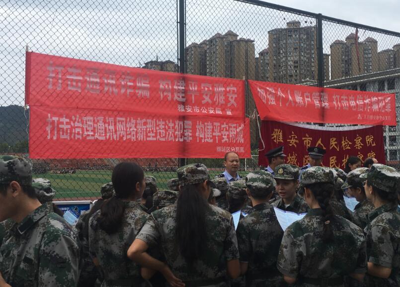 【本网讯】9月19日上午,由雅安市人民检察院、雅安市公安局、雅安市人民银行、雨城区检察院、雨城区公安分局和青江派出所主办,学院保卫处、学生处协办的关于打击通讯诈骗的宣传活动在青年路校区足球场举行。此次宣传...