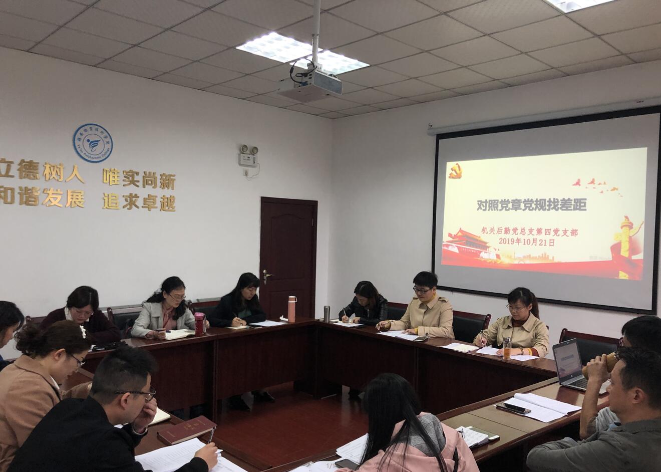 按照学院党委“不忘初心,牢记使命”主题教育实施方案的要求,行政后勤党总支第四党支部于10月21日下午,在育才路校区B110会议室开展对照党章党规找差距专题会。会议由党支部书记祝继英主持,第四党支部全体党员参加...