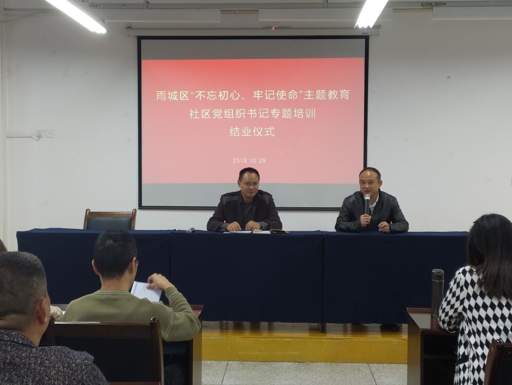10月29日,学院成人教育与培训处承办的2019年雨城区“不忘初心、牢记使命”社区党组织书记专题培训班”在学院青年路校区顺利结业。雨城区委组织部副部长魏宏强、学院有关负责同志,以及44名学员参加了结业仪式。 ...