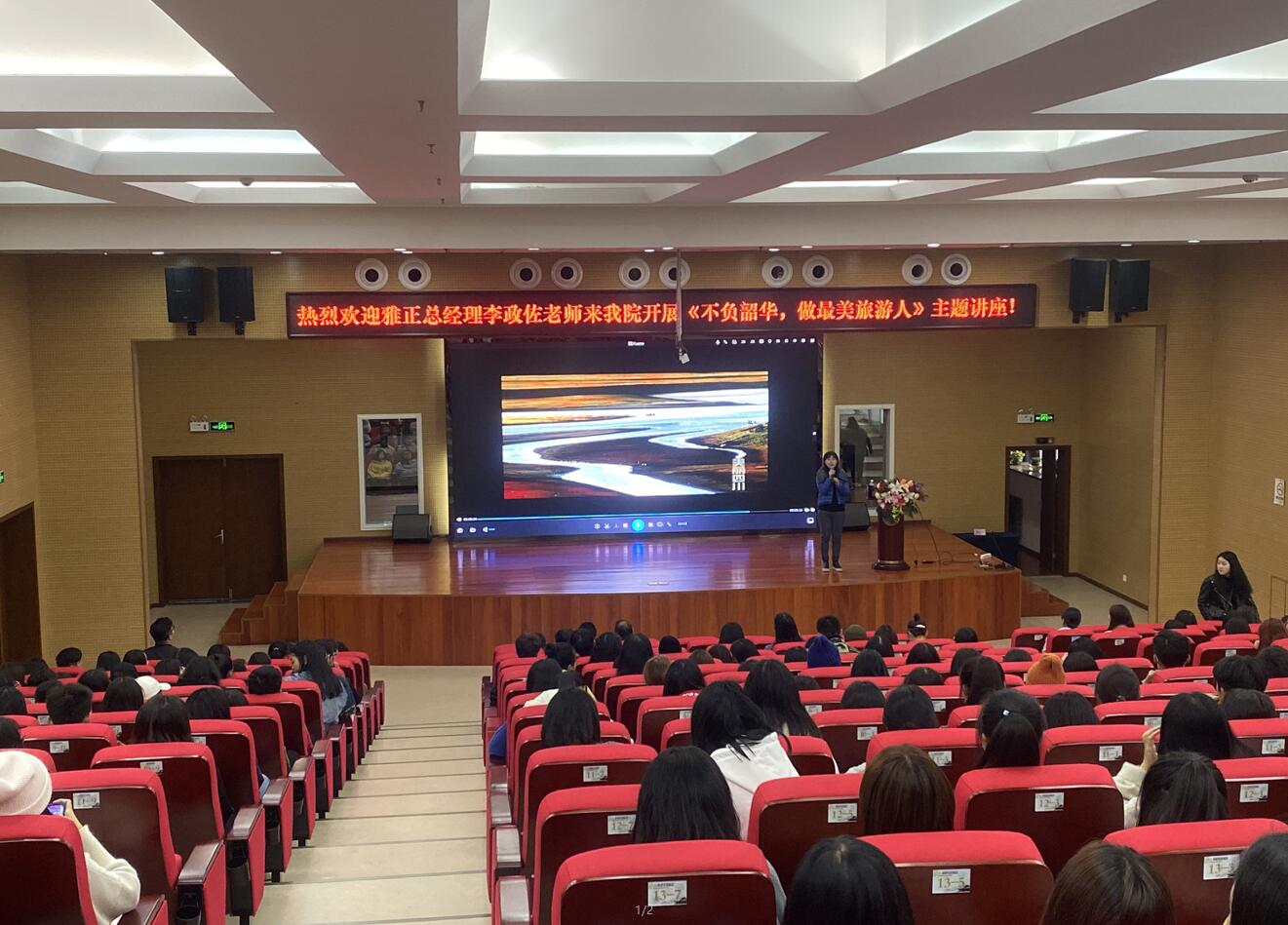 11月5日,经济与管理学院邀请了四川省雅正国际旅行社有限公司董事长、成都旅游导游协会副会长李政佐来校为我院旅游管理专业、酒店管理专业的全体学生开展了主题为“不负韶华,做最美旅游人”的讲座。经管学院党支部副...