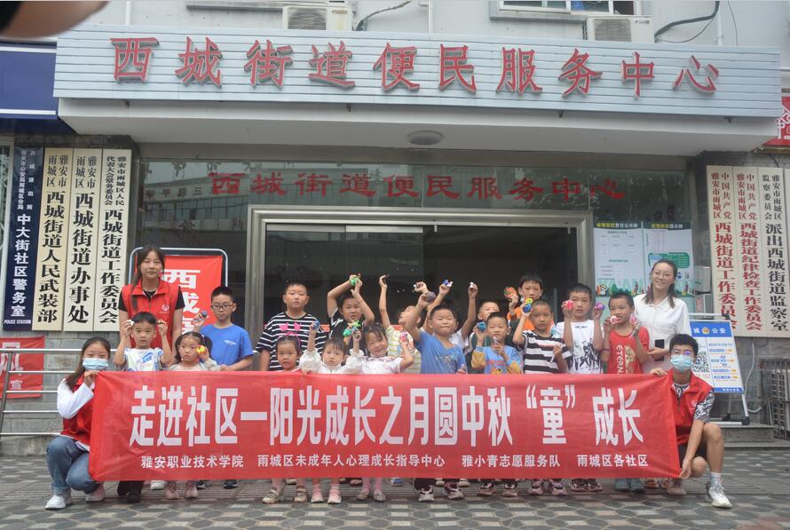 9月11日至12日,阳光成长之“月圆中秋‘童’快乐”心理健康活动在各社区进行。本次活动由雨城区精神文明建设办公室牵头,隶属马院的雅安市未成年人心理成长指导中心、雨城区未成年人心理成长指导中心,以及雅安职业技...