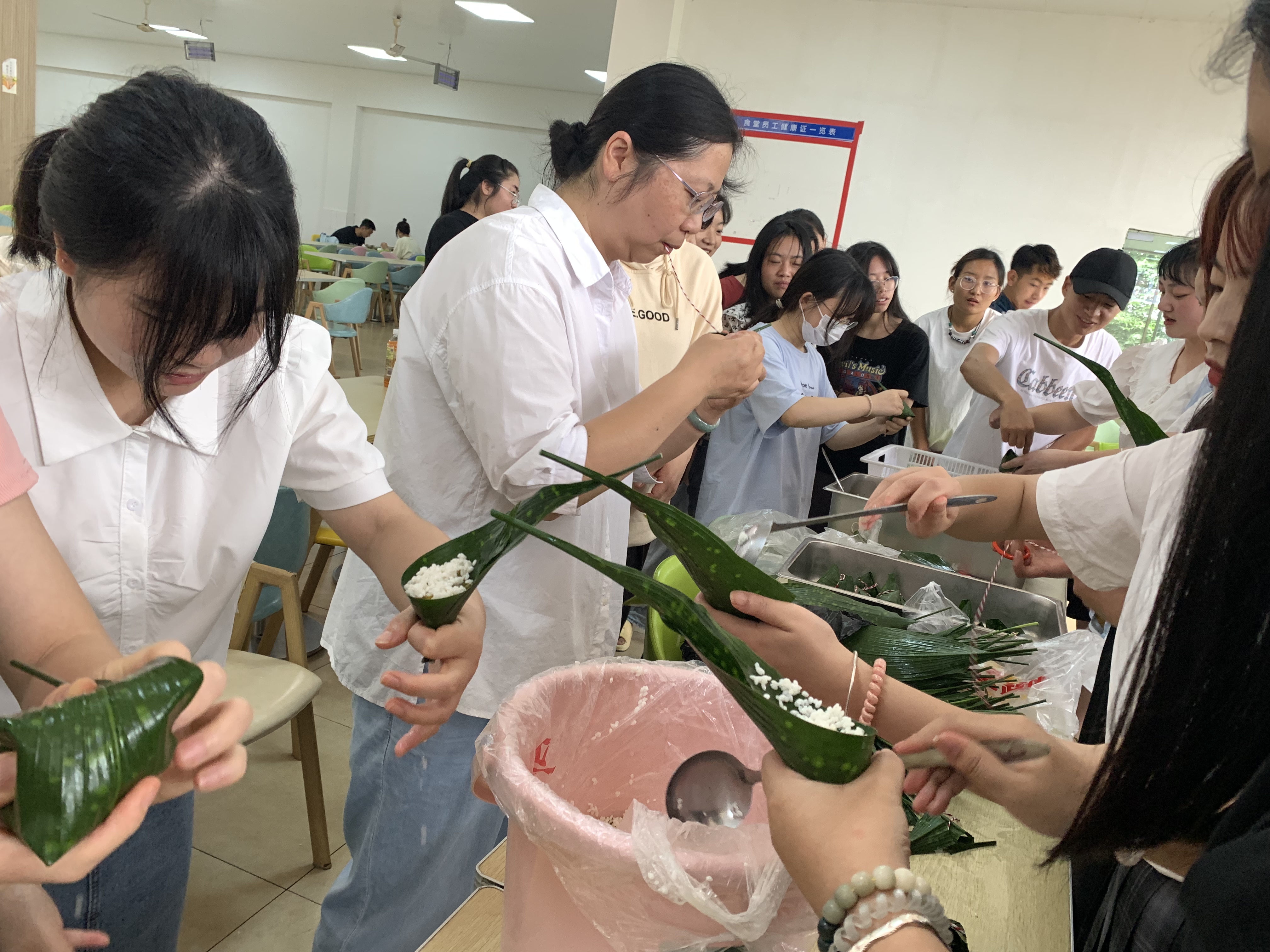 端午近,粽香飘,5月26日,师范学院组织30余名师生在青年路食堂开展“粽叶飘香迎端午”主题劳动教育活动。 活动中,胡晓伶老师给同学们讲解端午佳节的内涵,示范包粽子的技巧。同学们灵巧的双手上下翻飞,将糯米...