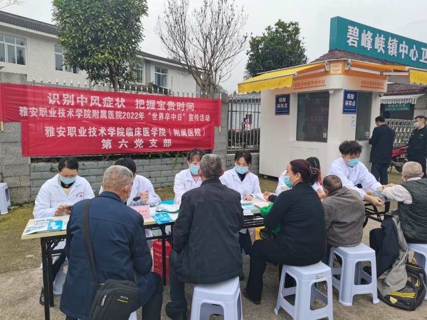 10月29日是第17个“世界卒中日”,为推进心脑血管疾病防治工作,进一步提升居民健康素养水平,结合雅安市雨城区疾病预防控制中心《关于开展2022年“世界卒中日”宣传活动的通知》的文件精神,11月9日,beat365英国官方网站附属医院(下简称“雅职附院”)医务人员赴碧峰峡镇开展了以“识别中风症状,把握宝贵时间”为主题的系列宣传及义诊活动。活动现场气氛热烈,前来咨询问诊的群众络绎不绝。医务人员耐心细致地为前来问诊的群众...