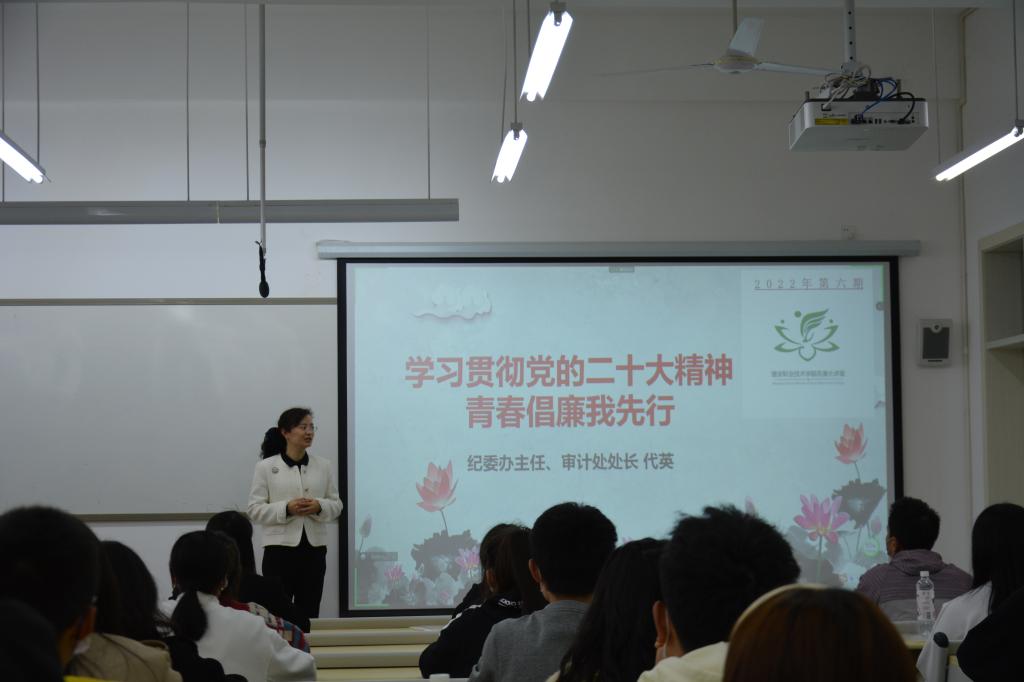 为全面深入学习贯彻党的二十大精神,认真落实中央纪委《关于学习宣传全国纪检监察系统先进模范的通知》,激励学院纪检干部在新征程新起点展开新担当新作为,11月22日,由学院纪委副书记、纪委办公室主任、审计处处长代英主讲的“青廉大讲堂”在经开区校区第五教学楼302教室举行,团委书记叶芋伶、纪委办公室全体教师、学生共计200余人通过线上线下相结合的方式参加学习。本次“青廉大讲堂”,代英以“学习贯彻党的二十大精神,...