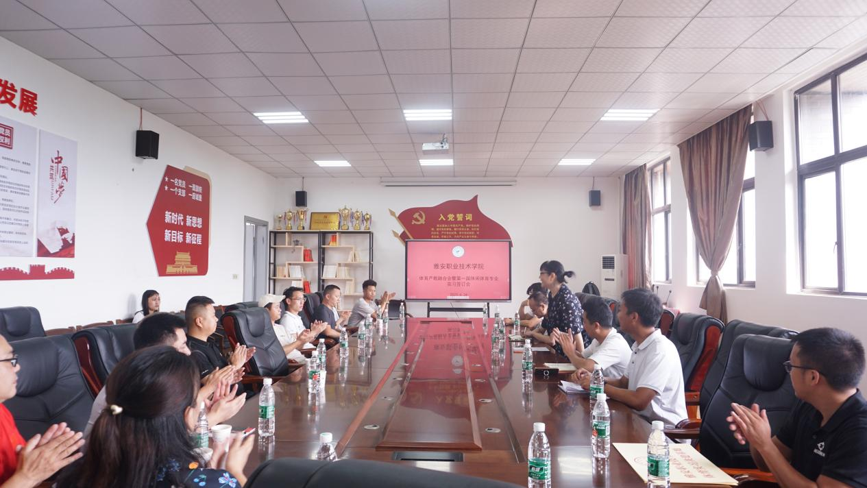 6月26日上午,由中医与康复养生学院主办的体育产教融合会暨第一届休闲体育专业实习签订会在经开区校区顺利举行。本次会议邀请到雅安市冰雪运动协会、雅安市武术协会、雅安市羽毛球协会、四川唯高科技有限责任公司、成都鼎锐文化传播有限公司、邦尼国际游泳健身、雅安市雨城区弘源体育篮球俱乐部、四川灵悦体育文化有限公司、科马体育发展有限公司、喜舞舞蹈工作室等10家单位。中医与康复养生学院直属党支部书记祝继英、副书记沈...