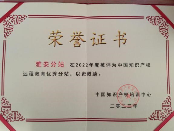 10-20-2023学院运营四川省知识产权远程教育-雅安分站荣获2022年度“优秀分站”称号