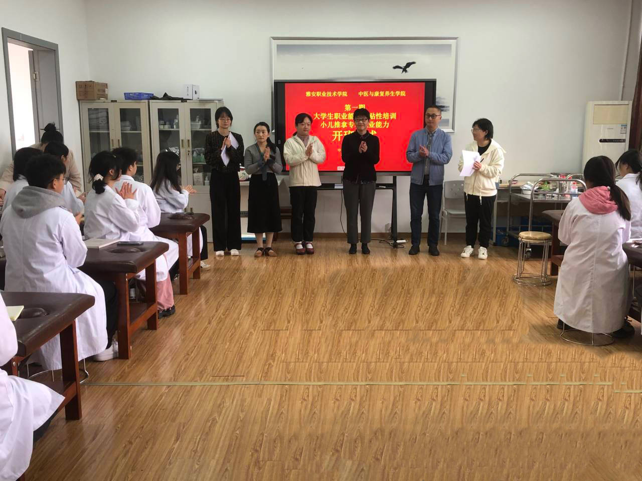 10-25-2023beat365英国官方网站承办的第一期大学生职业能力补贴性培训——小儿推拿专项职业能力培训开班仪式如期举行
