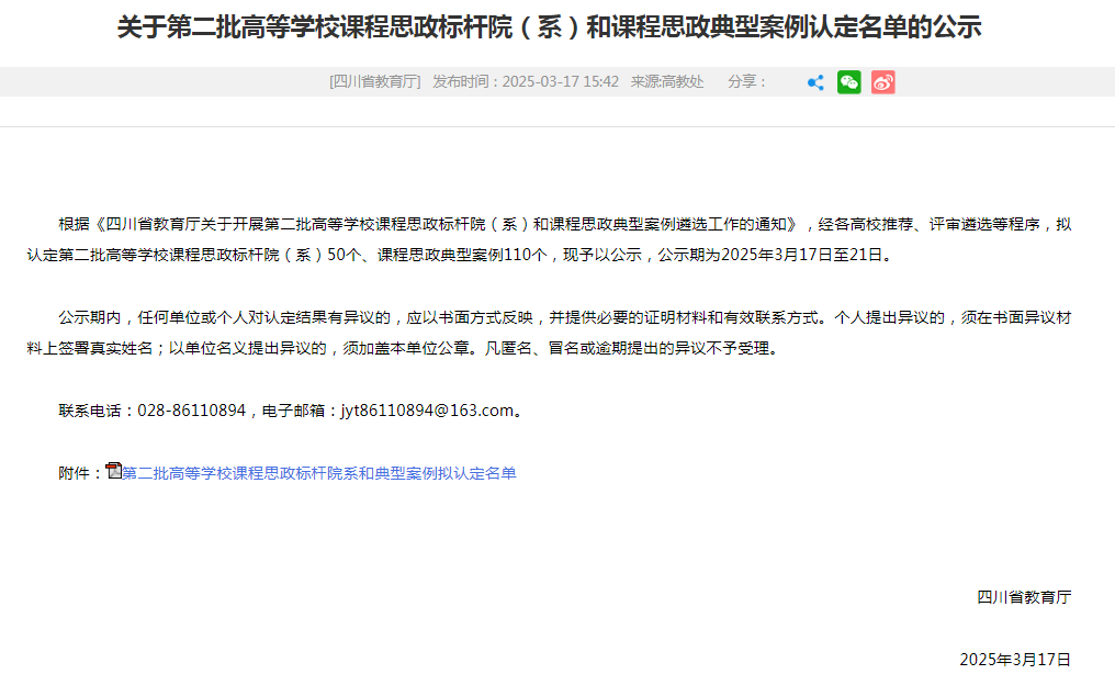 03-18-2025喜报!雅职院课程思政标杆院系和课程思政典型案例项目获省级认定