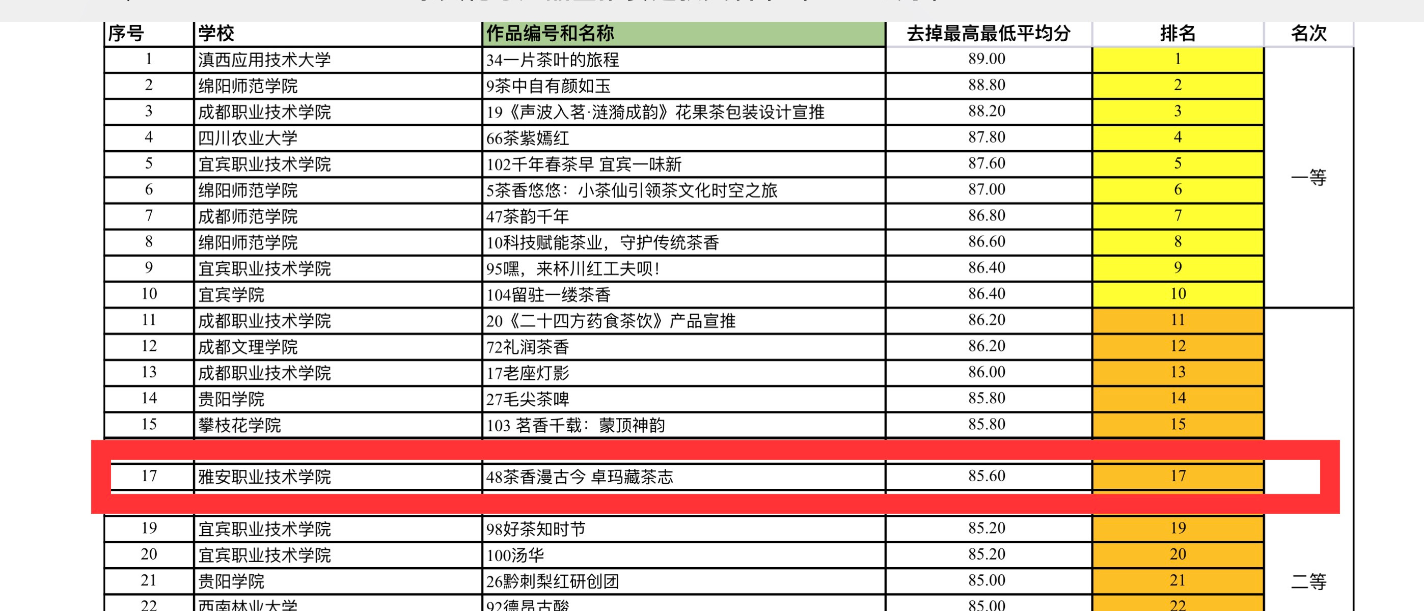 10-27-2025学校学生在2025年“百岳杯”四川省大学生茶学技能大赛获二等奖