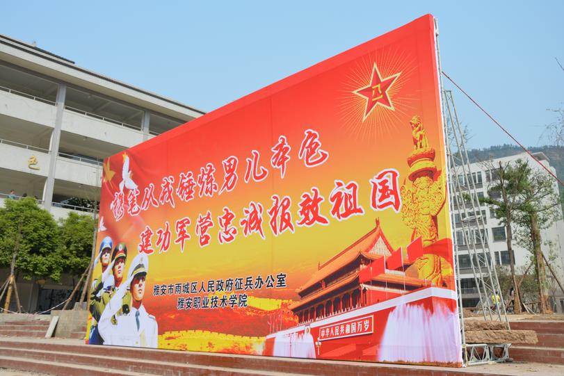 【本网讯】为切实做好2015年度在校大学生征兵入伍工作,深入贯彻全国大学生征兵工作网络视频会议精神及四川省教育厅大学生应征入伍网络视频会议精神,5月14日上午,雅安市雨城区武装部联合学院在青年路校区篮球场举办...
