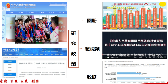 从宏观层面研究职业教育政策和文件,更好指导学院重点项目建设,把握建设方向。从中、微观层面,在教师团队、产教融合、思政教育、教材建设、教法改革、提质培优等建设过程中开展深入研究,形成适应发展需求、产教深度融合、中职高职衔接、职业教育与普通教育相互沟通,体现终身教育理念的现代职业教育体系,建立人才培养立交桥,形成合理教育结构,为推动现我国现代教育体系基本建立、教育现代化基本实现贡献力量。