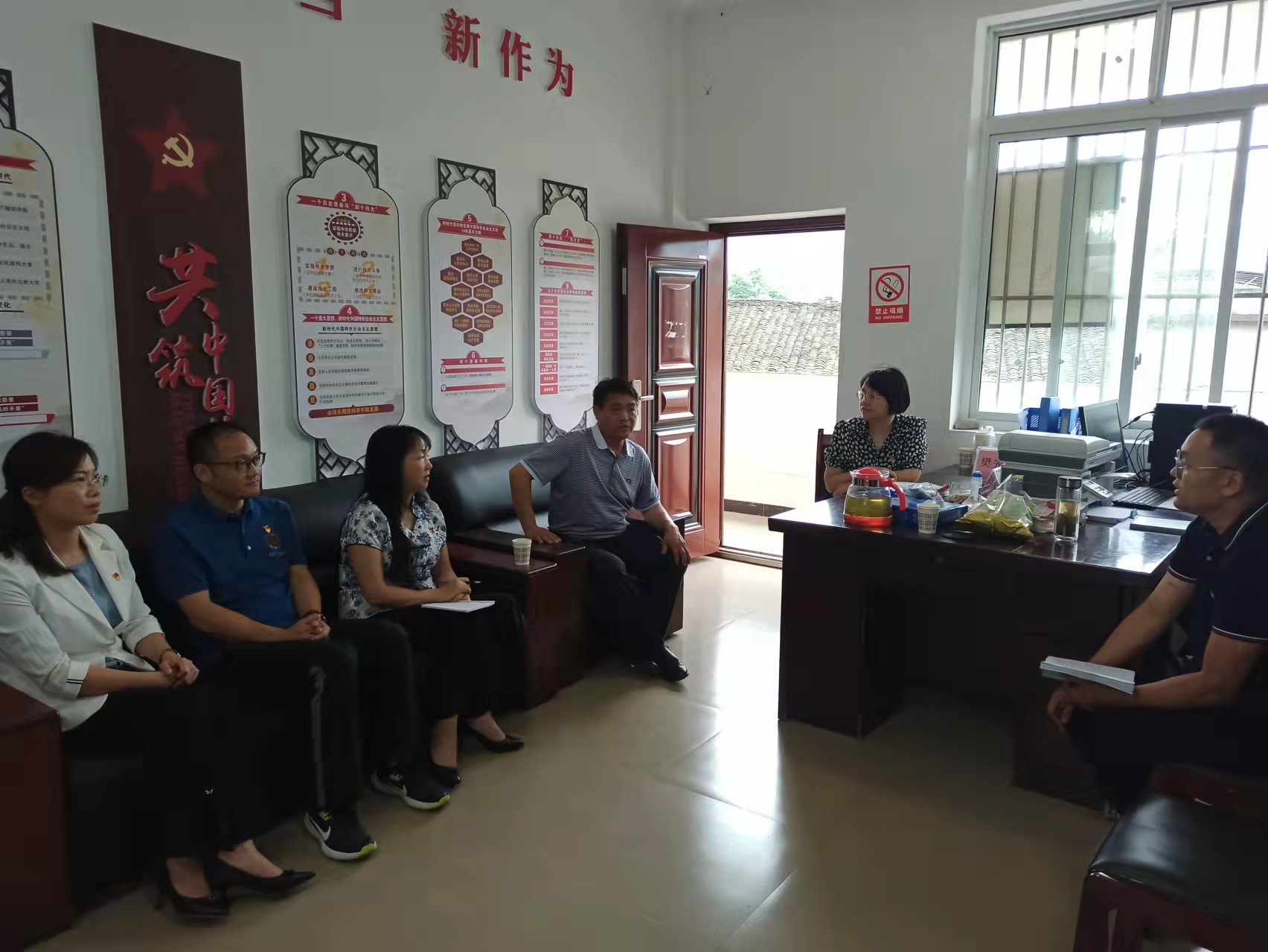 7月1日,学校党委副书记付洪涛,党委委员、副院长樊先茂等一行前往beat365官网乡村振兴定点帮扶的天全县小落村,开展党建联建活动,为村两委干部、党员代表举办形势政策宣讲,调研乡村振兴帮扶工作情况,看望驻村干部、走访慰问老党员。