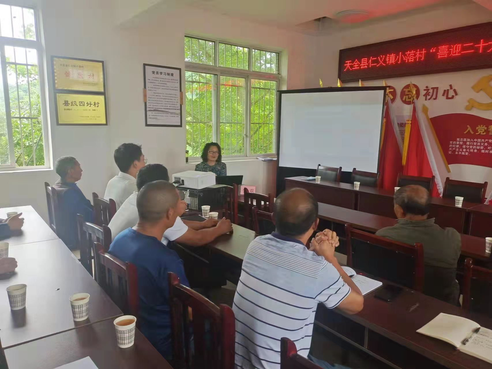 一同前往的学校机关后勤第一党总支第一党支部与小落村党支部开展了“喜迎二十大 奋进新征程”庆“七一”党员大会,大家同上一堂党课,并重温入党誓词。雅安市委宣讲团成员、学校马克思主义学院教授李霓作了题为《省第十二次党代会精神解读》的党课报告,向大家宣讲了习近平总书记来川视察重要指示精神和省第十二次党代会精神。