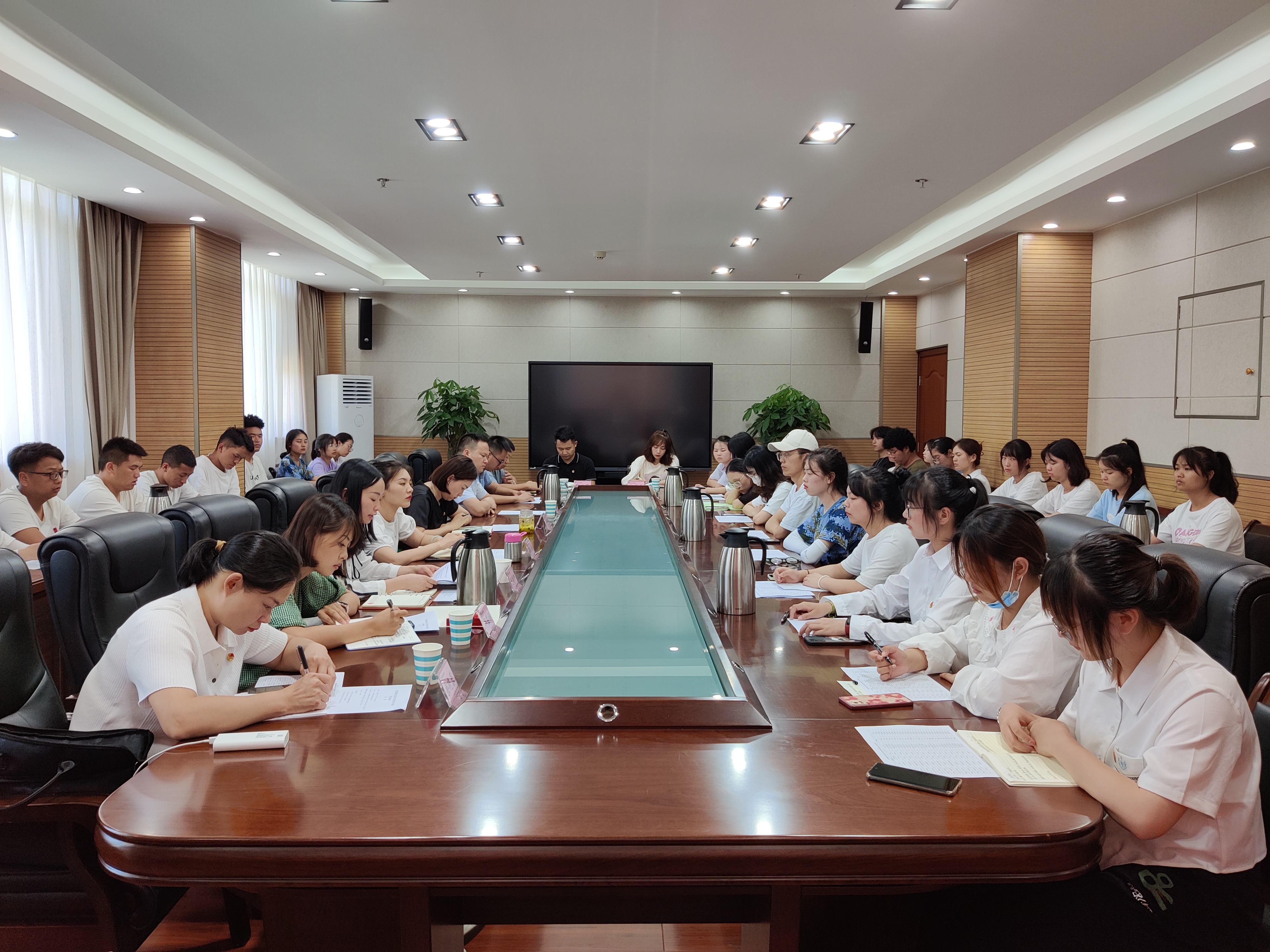 7月6日,共青团雅安市委青年思想引领专委会到我院开展青年思想引领座谈会,会议在经开区校区综合楼303会议室举行。共青团雅安市委青年思想引领专委会委员、药学与检验学院副院长何靖柳、团委副书记郭庆参加座谈会,团员代表50余人参会。会议由团委书记叶芋伶主持。