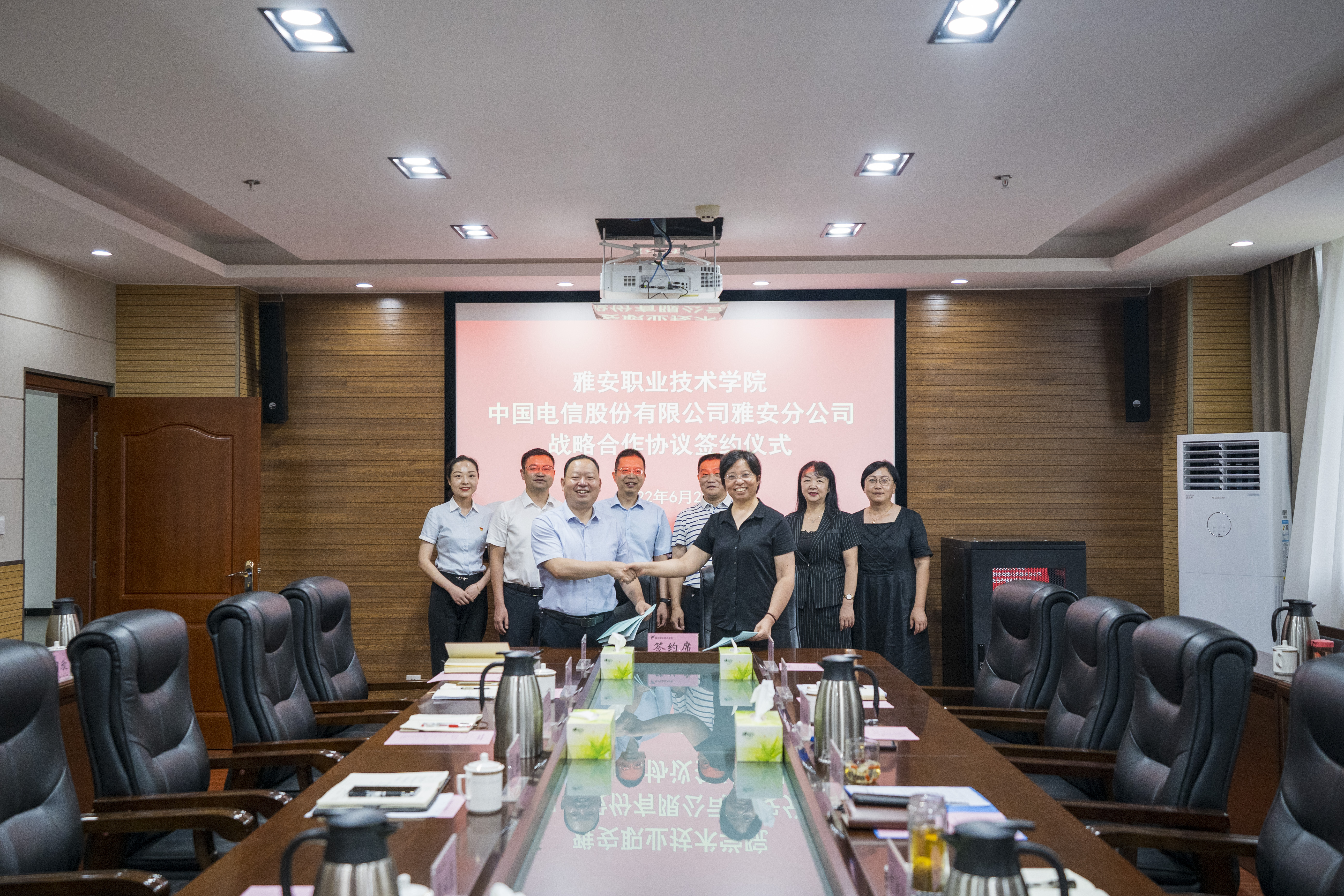 为了提升学院办学综合实力、提高人才培养质量,对接5G产业对技术技能型人才的需求,6月23日,学院与中国电信股份有限公司雅安分公司在经开区校区综合楼303会议室举行了战略合作协议签约仪式。中国电信雅安分公司党委书记兼总经理段炼、副总经理郑必勇、纪委书记曹安瑶、校园客户中心总经理刘畅、云中台总经理全兴才、无线网络中心总经理王杰、经开区分公司总经理熊升龙,beat365英国官方网站党委书记李春模、党委副书记付洪涛、学院副院长彭裕红及相关二级部门负责人参加了此次会议。签约仪式由学院党委副书记付洪涛主持。