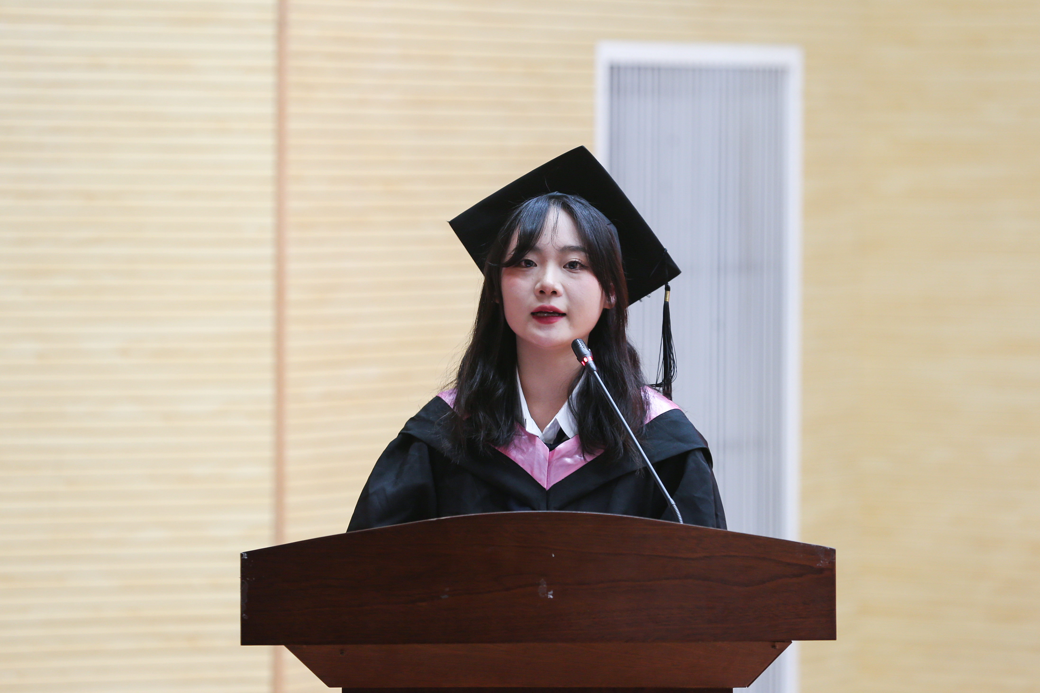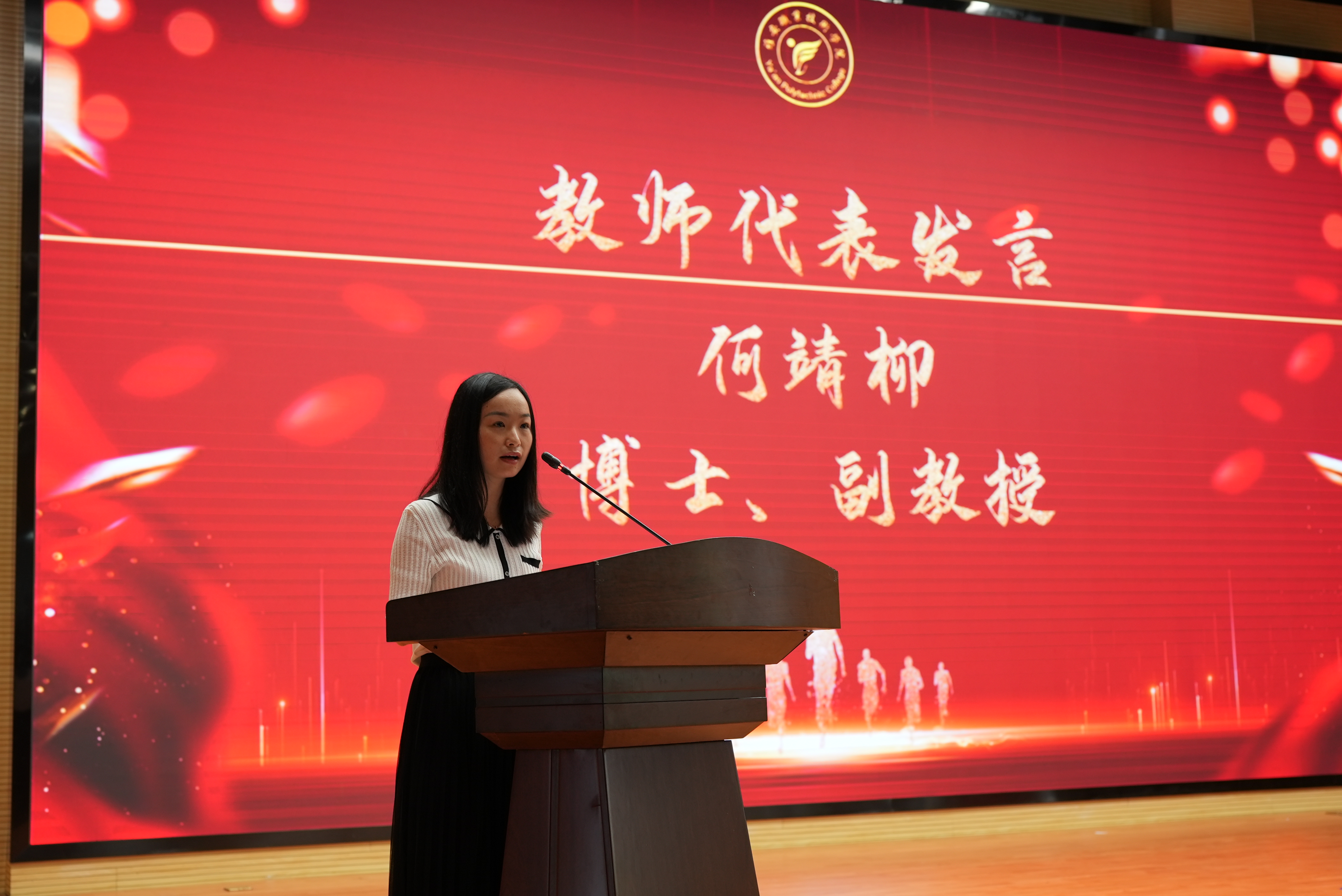 本次毕业典礼在各二级学院教师代表的毕业寄语中拉开帷幕。伴随着悠扬的音乐,师范学院学生饱含深情地朗诵了原创诗歌《青春记忆,梦想启航》,字字句句充满了对母校的不舍和对未来的憧憬。三年光阴,如白驹过隙,从入校到毕业的每一个瞬间,又仿佛历历在目。教师们的殷殷嘱托,同学们的动人诗歌,营造出温馨而美好的现场氛围。