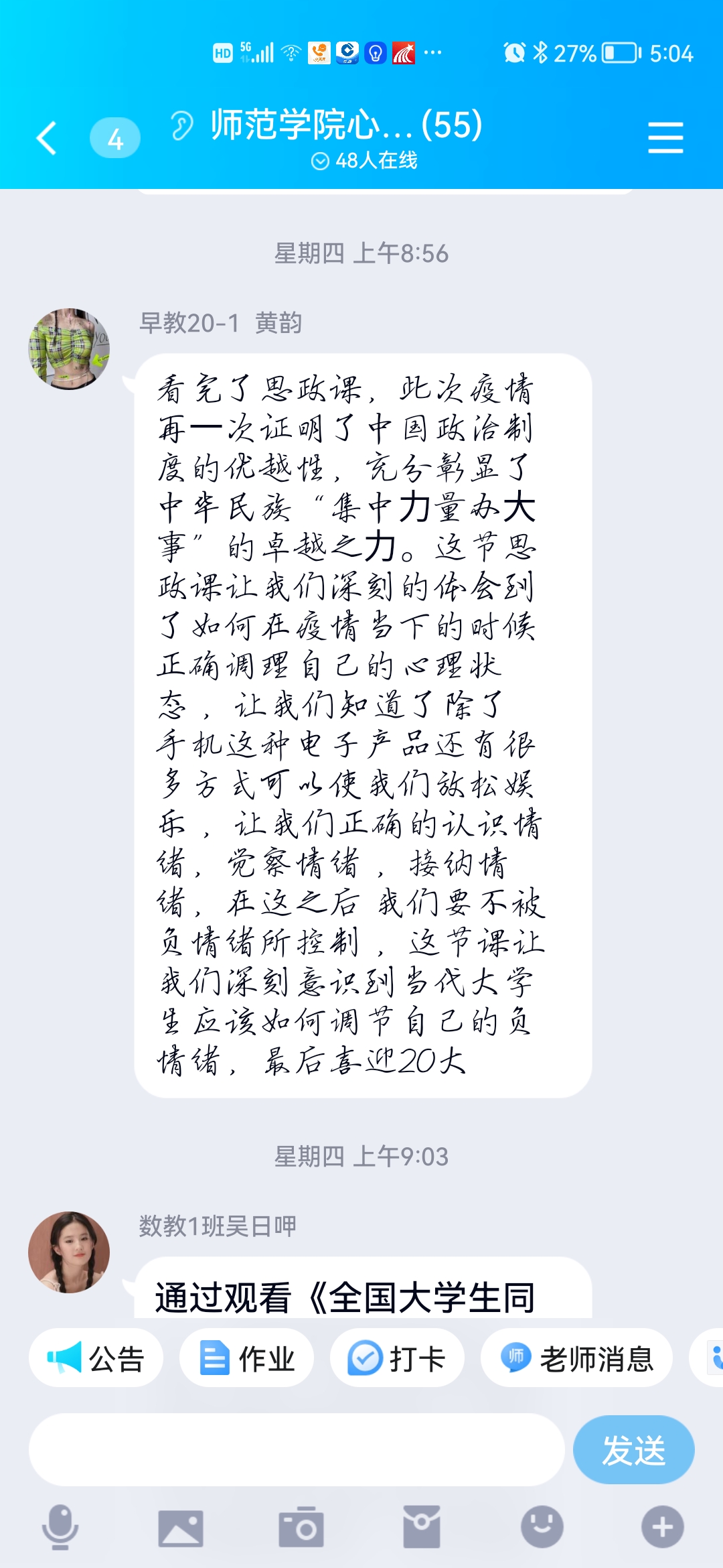 5 月25日晚 上8点,组织全院学生通过四川教育发布微信公众号、学习强国教育强川、四川省教育资源公共服务平台、易班网等平台,收看由省委教育工委、教育厅委托成都医学院以“喜迎二十大 做合格大学生”为题录制的一期后疫情时代大学生心理调节思政大课。课程获得了同学们的普遍好评,并纷纷表示受益匪浅;多次组织辅导员参加在线网络培训,例如《人本心理学思想在学生工作中的应用-论辅导员谈心谈话》、《学生心理危机干预中的法律议题》、《辅导员谈心谈话的技巧和艺术》等。