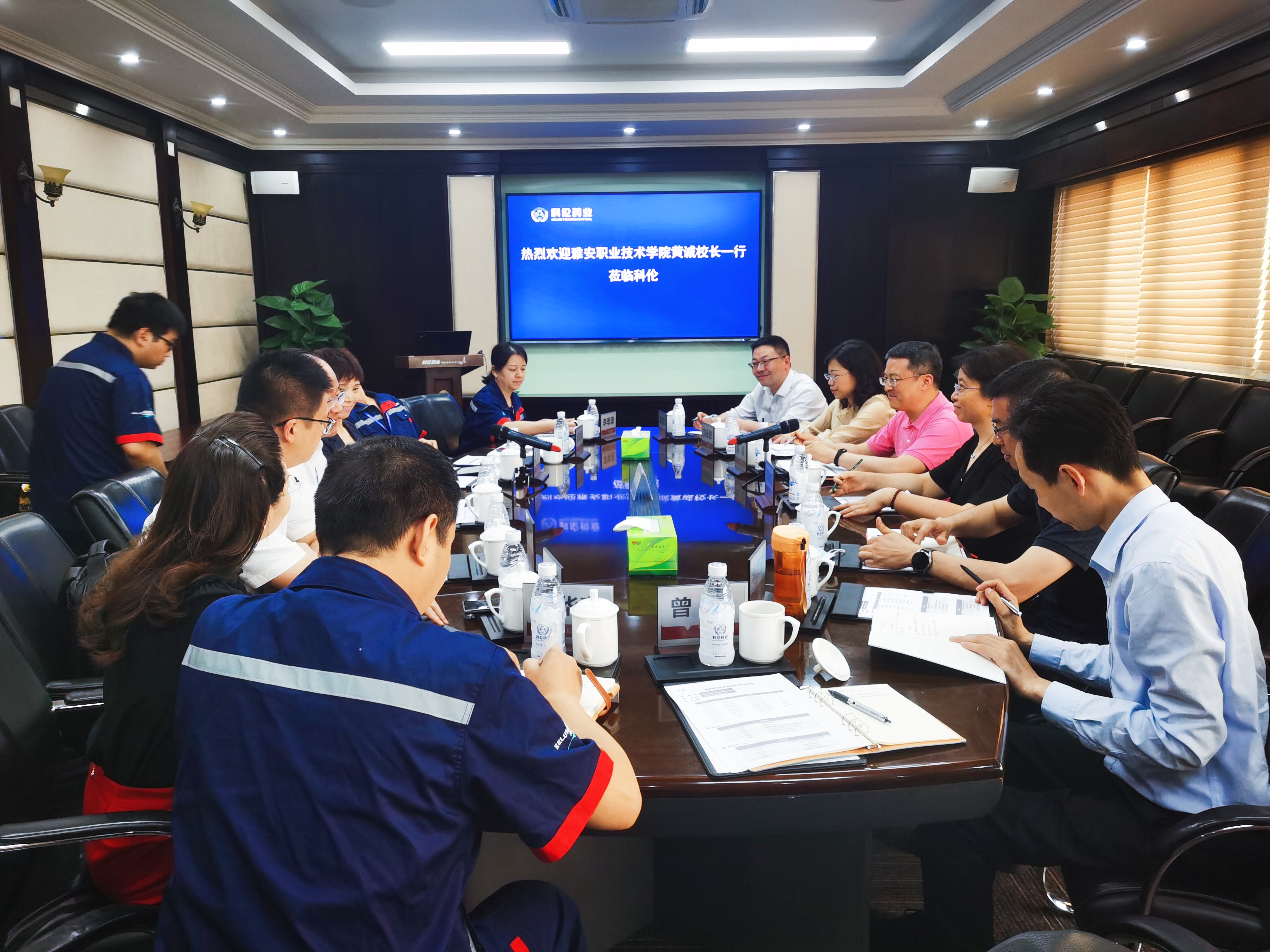 座谈会上,科伦药业副总经理兼质量监管中心总经理王亮出席,并对学院来访表示热烈欢迎;科伦药业还分别从企业发展情况、产教融合开展情况、我院毕业生在科伦工作及发展情况、企业毕业生需求以及企业多元化人才培养思考等方面进行了介绍;我院毕业生、现任科伦药业新都基地行政部部长杨琴代表在科伦工作的校友做了发言。黄诚表示,学院与科伦药业的合作由来已久,形成了良好的合作基础,合作情况受到雅安市委主要领导的关注和肯定,希望双方能再进一步拓展合作内容,深化产教融合,打造校企合作、产教融合新典范。双方还围绕人才培养对接岗位需求、双师教师培养、专业方向拓展、企业专家进校园等方面的工作进行了讨论并达成深化合作意向。
