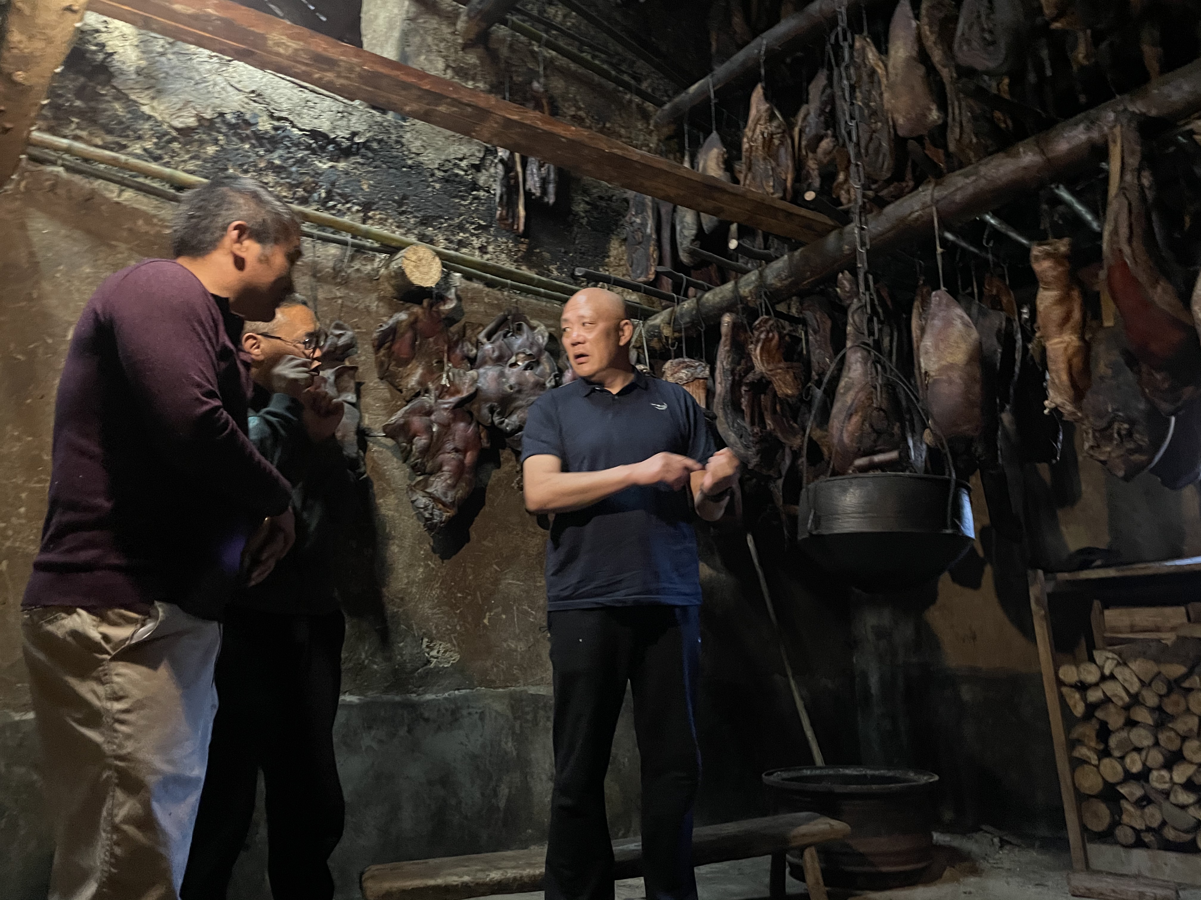 樊正康一行参观皇木腊肉村非遗博览园,详细了解了皇木腊肉的八道制作流程,了解其独特的生香工艺和文创开发价值。