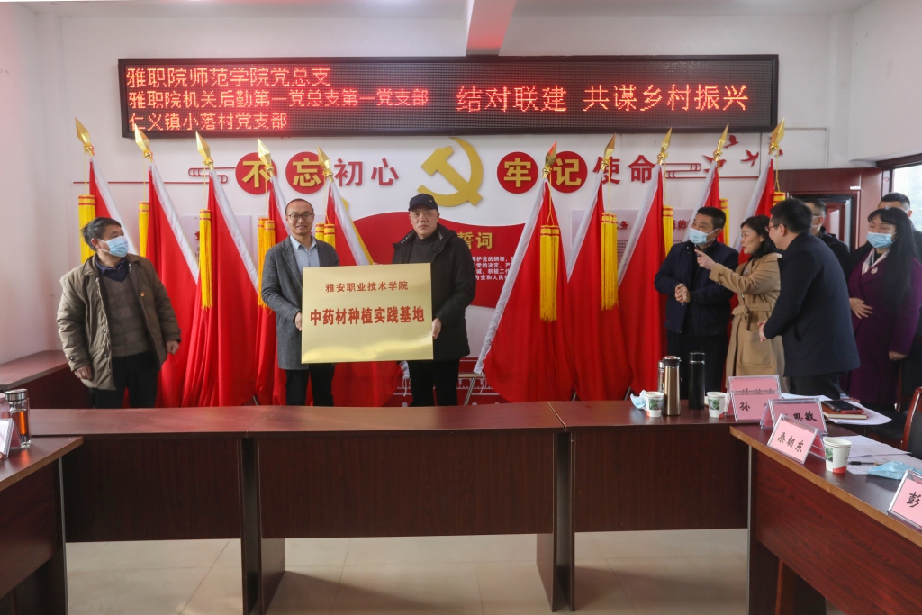 座谈会上,学校机关后勤第一党总支第一支部、师范学院党总支同小落村党支部签订了支部结对联建协议,同时,举行了beat365英国官方网站劳动实践教育基地和中药材种植实践基地授牌仪式。