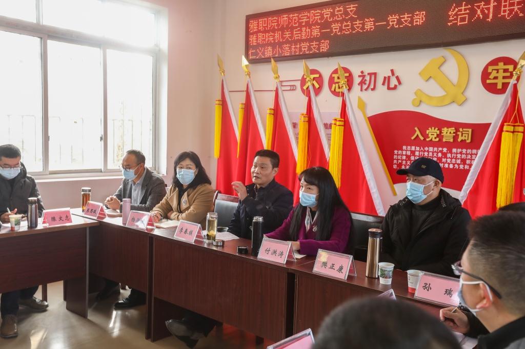 小落村党支部书记敖培均介绍了小落村及今年开展工作情况,并对beat365官网选派的驻村干部杨栋同志的工作给予了充分肯定。学校党委副书记付洪涛介绍了学校开展乡村振兴工作及对口帮扶小落村的基本情况,介绍了学校实施小落村亮化工程,为村民集中居住点安装太阳能路灯;铺设生产便道,提高土地利用率;购买并种植黄精、黄柏等中药材,拓宽村集体经济发展路径;加强党建联建,开展送医下乡、送文化下乡;宣传国家高职扩招政策,通过入户宣传,微信推送等方式做好“八类人员”的招生宣传工作,为村民提供政策咨询服务等方面的工作。她表示,下一步学校将持续在党建联建、人才培养、产业发展、医疗卫生、教育培训、精神文明创建等方面加大帮扶。继续深化党史学习教育,将帮扶工作与开展我为群众办实事实践活动相结合,巩固和拓展脱贫攻坚成果,进一步做好乡村振兴工作。
