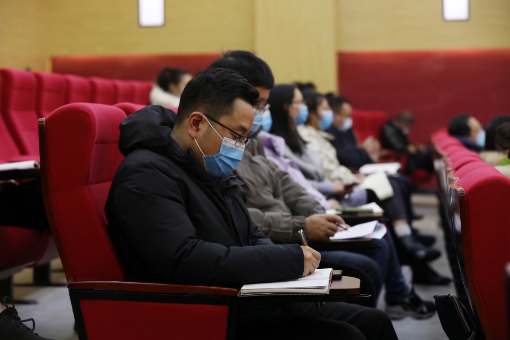 市政府秘书长李阳军、副秘书长陈树泉、市教育局局长赵敏、市委宣传部机关党委书记雷华、市政府办机关第一党支部全体党员以及学院党政领导班子成员、中层干部和师生代表,共计90余人聆听了宣讲报告。