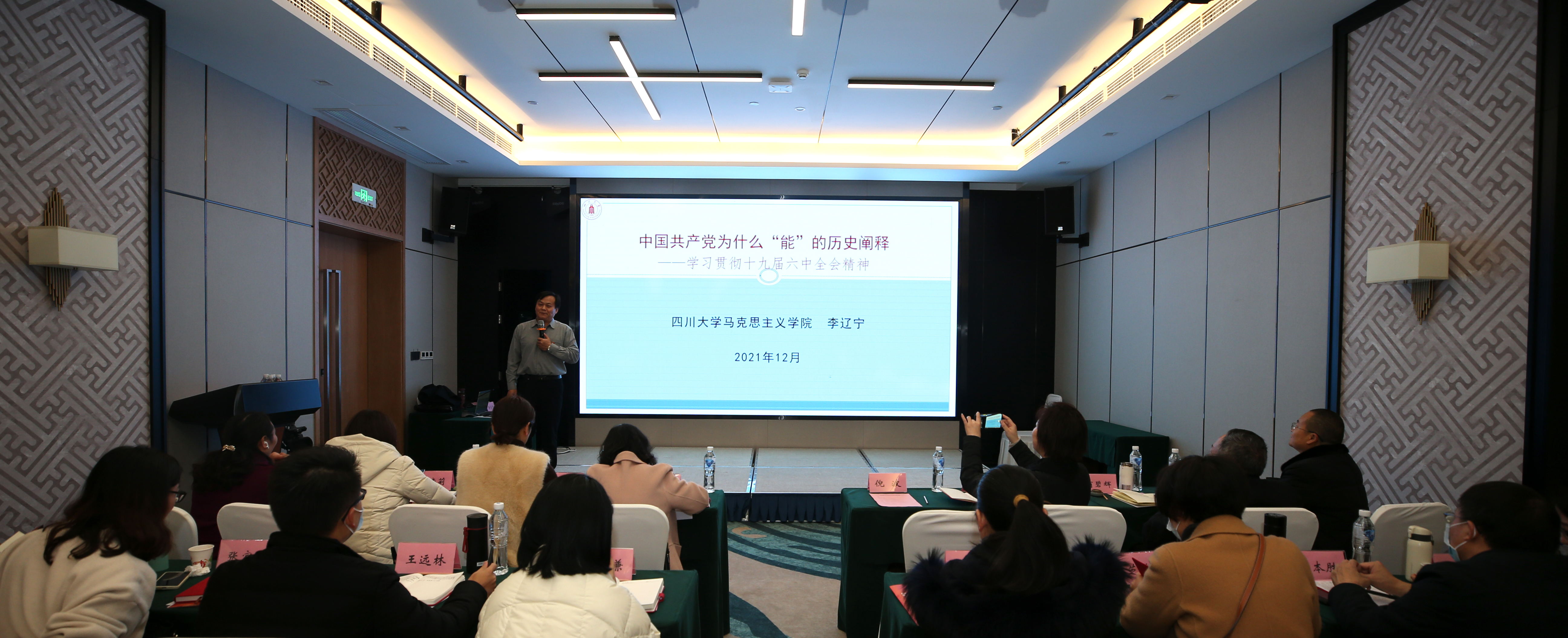 在专题讲座中,宋键以《红军长征在雅安的历史与启示》为题进行了专题讲座。他从红军长征在雅安的主要历程、中央红军长征在雅安的四大要事、讲好长征故事、党史故事的思考等三方面深刻解读了红军长征在雅安创造的惊天地、泣鬼神的历史,强调始终坚守人民立场的重要性。他指出,思政课是落实立德树人根本任务的关键课程,党的历史是最好的“大思政课”教材,思政课教师需要学党史、讲党史,把党领导人民进行革命、建设、改革、复兴的辉煌历史讲清楚,把党和红军坚定理想信念、排除万难夺取胜利的光辉形象讲生动,把党和红军与人民的鱼水深情讲透彻,把中国共产党为什么能、人民为什么衷心拥护和坚定支持党等深刻道理讲明白。四川大学马克思主义学院教授李辽宁,以《中国共产党为什么“能”的历史阐释——学习贯彻十九届六中全会精神》为题,从真理力量、领导力量、物质力量、精神力量、时间力量等五个方面深入讲解了中国共产党为什么“能”。他强调,中国共产党为什么能,中国特色社会主义为什么好,归根到底是因为马克思主义行。事实证明,只要始终坚持党中央的坚强领导,始终坚守人民至上的价值立场,始终坚持自我革命的政治自觉,始终坚持实干笃行的奋斗品格,中华“复兴”号巨轮就一定能行稳致远,扬帆远航。
