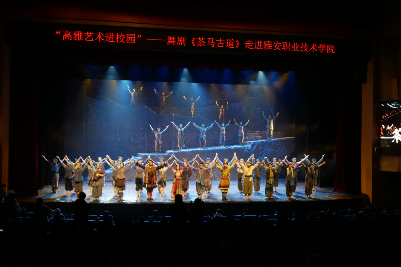 《茶马古道》是贯彻落实习近平总书记共绘民族团结同心圆重要指示,弘扬爱国主义、民族精神推出的精品力作,是国家艺术基金资助项目,由四川歌舞剧院演出,是全国第一部以川藏茶马古道为原型创作的舞剧。12月5日,我院师生共300余人参加了在雅安文化艺术中心举行的《茶马古道》雅职院专场演出。