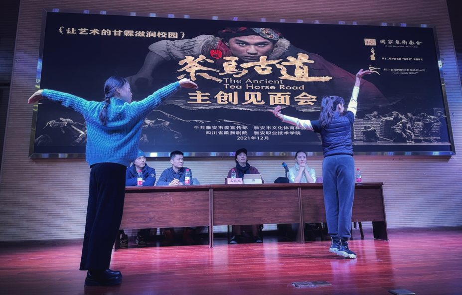 4日,由师范学院承办的《茶马古道》主创见面会在青年路校区汇雅厅举办。学院党委委员、宣传统战部部长郭英才及师范学院200余名师生参加。活动由师范学院党总支副书记陆小路主持。活动中,四川省歌舞剧院著名国家一级编导、文化部优秀专家、全国十六大代表、四川省电影电视戏剧十佳导演、四川省舞协副主席、四川省剧协理事马东等5位艺术家为师生们讲解了民族舞剧《茶马古道》的创作背景、创作过程,并就师生的舞蹈表演给予指导,分享了高校美育课程的教学经验。