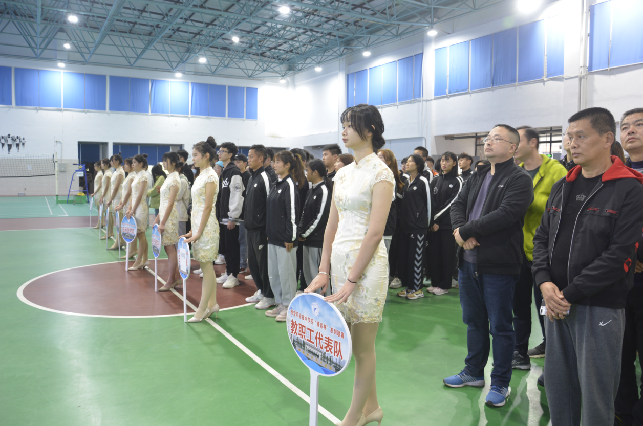 开幕式上,全体师生齐唱国歌。夏安琼致辞,她表示群众体育在提高人民整体素质,促进社会主义精神文明和物质文明建设方面发挥着越来越显著的作用。为更广泛地在师生中开展好群众性体育活动,学校在2021年先后组织了“康养杯”师生篮球联赛、羽毛球联赛,今天气排球联赛也开始了,希望全校师生增强全民体育健身意识,培养体育锻炼的技能和习惯,形成崇尚健身、参与健身的校园文化氛围。