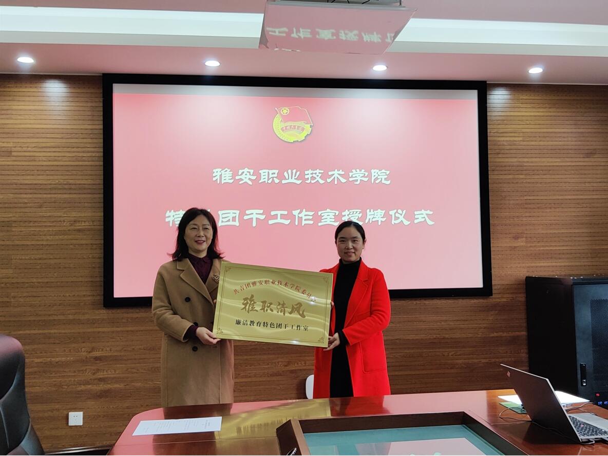 杨洪媛为特色团干工作室授牌,并提出:要做好深耕者,沉下心来把青年学子的思想引领工作做细做实;要当好领头雁,高标准高要求地推进工作,起好率带作用,以点带面,充分挖掘学院共青团工作特色亮点进行创新探索;要打好组合拳,充分整合校内外资源,发挥特色工作室的辐射带动作用,协同推进理论研究和实践探索。同时,还要做好宣传推广,打响工作室的品牌,让特色团干工作室成为雅职团学工作一张靓丽名片。
