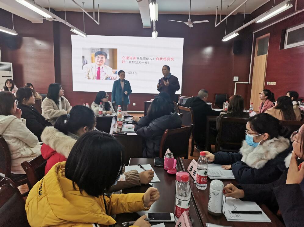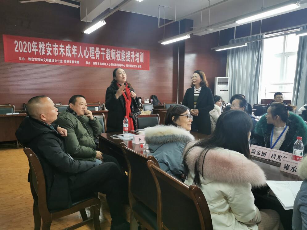 11月27日-29日,由雅安市精神文明建设办公室、雅安市教育局主办,雅安市未成年人心理成长指导中心(beat365英国官方网站)承办的全市未成年人心理骨干教师技能提升培训班在学院青年路校区举行。学院党委副书记付洪涛出席开班仪式并致辞。雅安市市委宣传部公民思想道德建设科科长张锦、雅安市市政府教育督导团办公室副主任税世春参加开班仪式。来自全市六县两区和和市直属学校以及各县区文明办相关工作人员共55人参加此次培训。