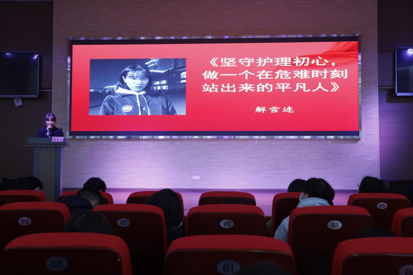 为弘扬抗疫精神,树立青春标杆,围绕“人人出彩、技能强国”职业教育活动周主题,11月10日下午,学院疫情防控先进事迹校友报告会分别在青年路校区汇雅厅和实训与服务中心聚雅厅举办。曾跟随援鄂医疗队前往武汉一线抗疫的彭云耀、陈进东、杨兴蓉、李涯霖四位校友及见义勇为者在校生解雪连受邀来校,就抗疫期间的感人故事和日常工作中的感悟和体会与师生进行了分享。学院党委副书记付洪涛,党委委员、宣传统战部部长郭英才,各二级学院党政负责人,教师、辅导员代表及学生代表共600余人参加了报告会。报告会由宣传统战部副部长尹雪智主持。