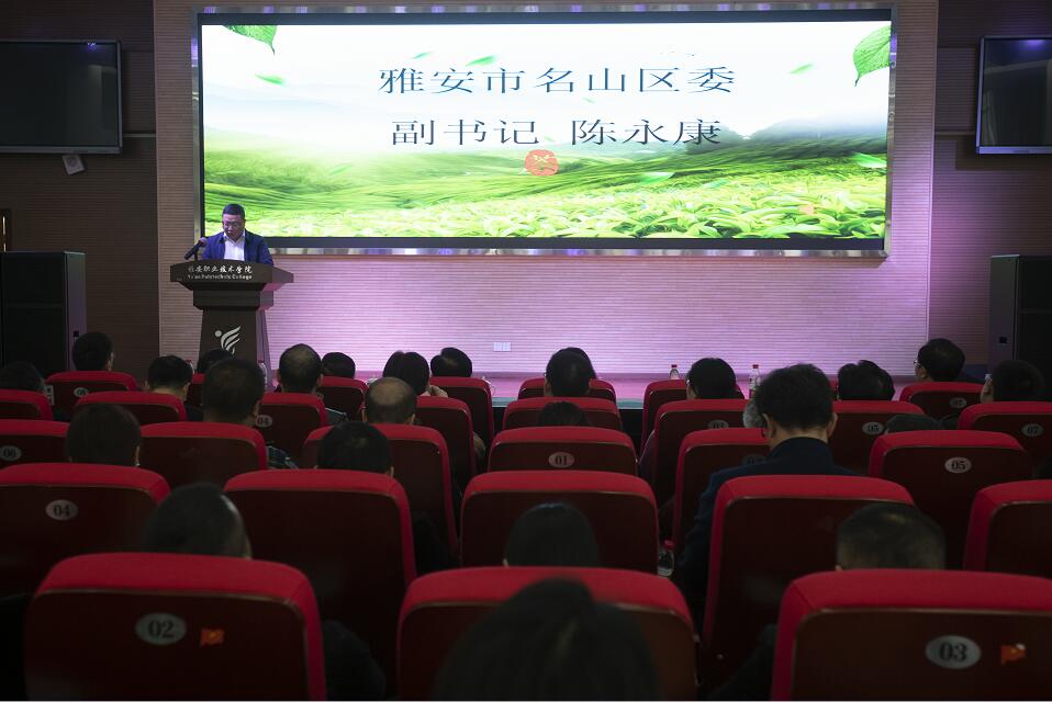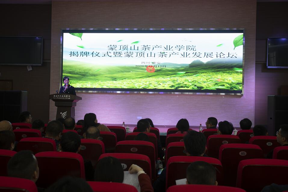 职业教育活动周期间,11月12日,蒙顶山茶产业学院揭牌仪式暨蒙顶山茶产业发展论坛在青年路校区汇雅厅举行。学院院长石静、名山区委副书记陈永康、雨城区副区长廖鹏、四川省农业科学院茶叶研究所党委书记王云、浙江树人大学国际茶文化学院执行院长张星海等出席会议。大会由学院副院长彭裕红主持。