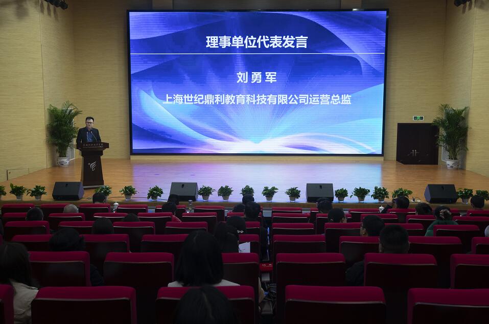 会上,副理事长、上海世纪鼎利教育科技有限公司运营总监刘勇军代表理事单位作了发言,表示将以本次理事会成立为契机,进一步加强与学院的深度合作,促进共同发展。