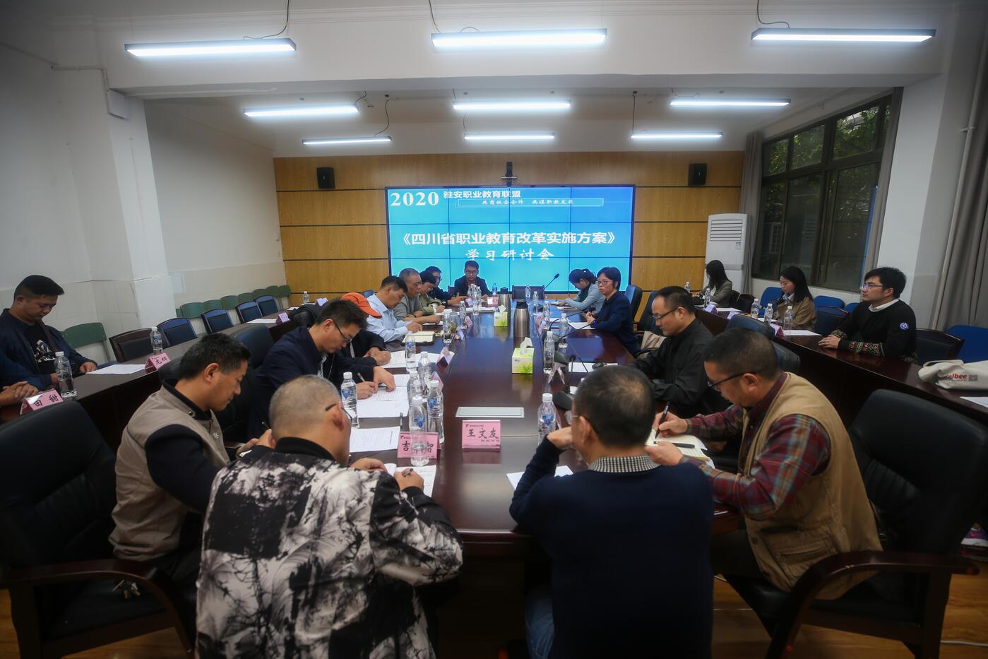 随后,参会人员分组学习了《四川省职业教育改革实施方案》,研讨了区域职业教育的发展及第二届联盟工作计划。